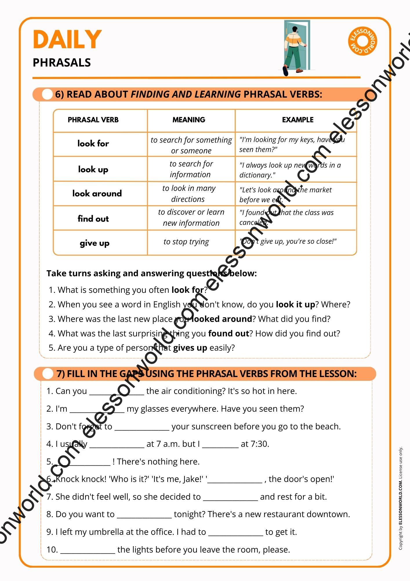 - Finding & learning phrasal verbs (look up, find out, look for etc.)