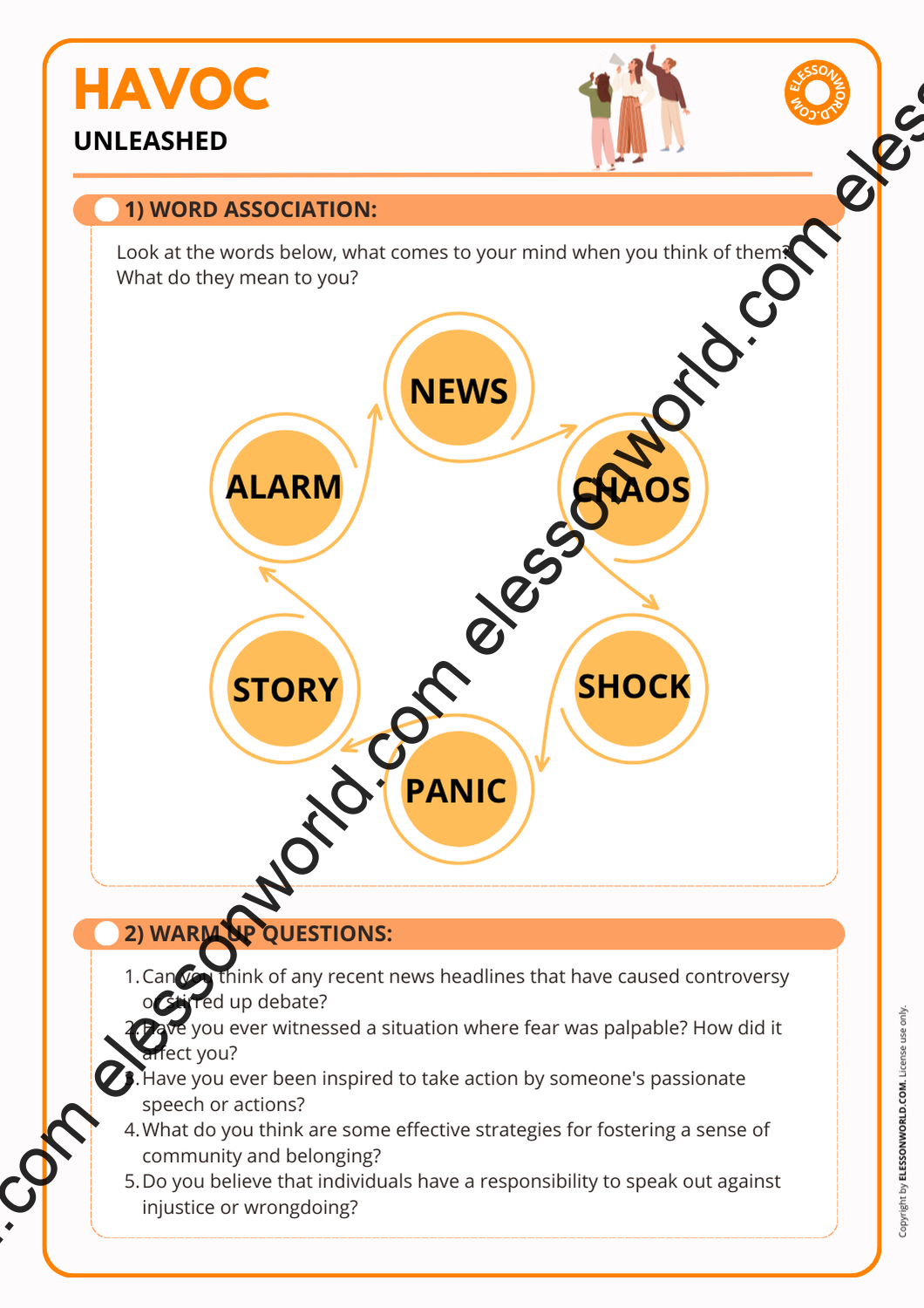 This B2-C1 level ESL lesson delves into the themes of chaos, disruption, and their impacts on society. The lesson is available in both printable format for traditional classrooms and a digital 16:9 PDF presentation. The user-friendly digital format allows easy navigation in presentation mode with just a click of the spacebar, requiring no additional software.